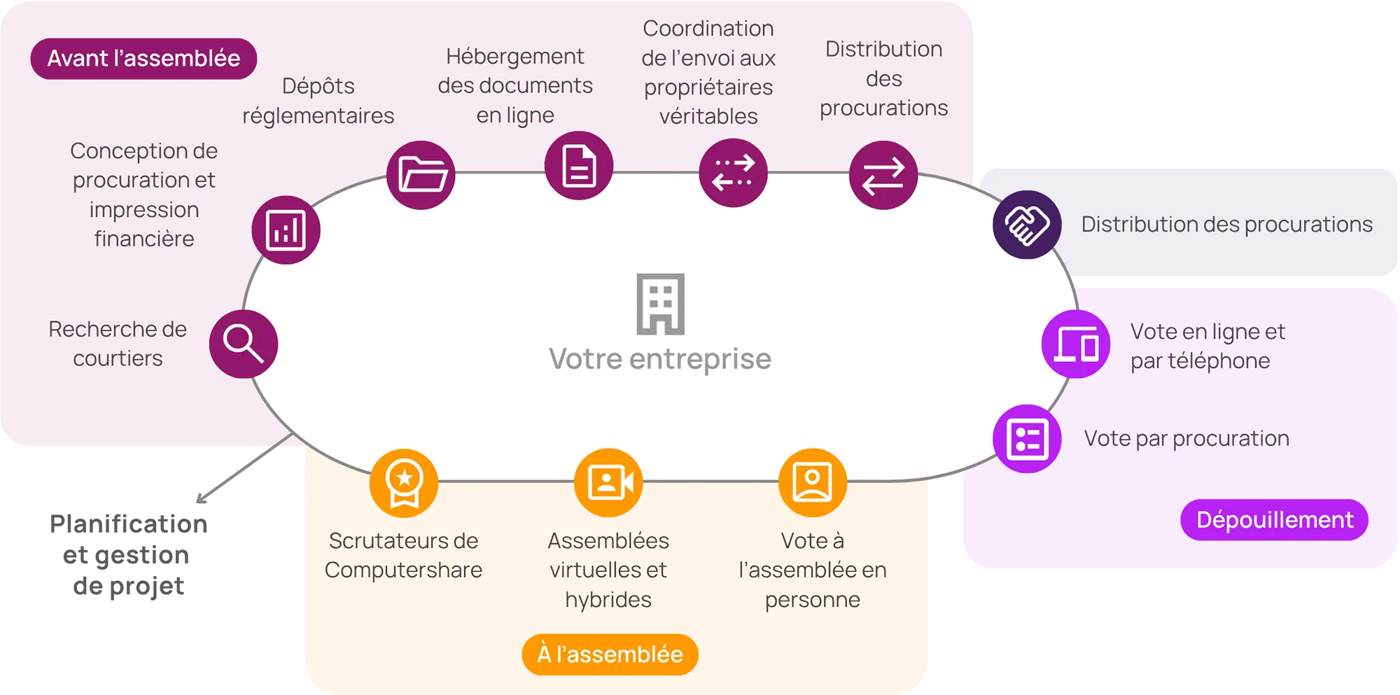 Il existe deux approches pour planifier et tenir votre prochaine assemblée annuelle. Choisir Computershare comme partenaire signifie que nous prenons en charge tous les éléments essentiels pour garantir le bon déroulement de votre assemblée, tout en réduisant les risques et la complexité.